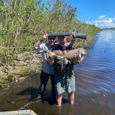 All Trophy Alligator hunts are in high success rate zones only. We scout prior for best opportunity for your Wild Florida Trophy Alligator.